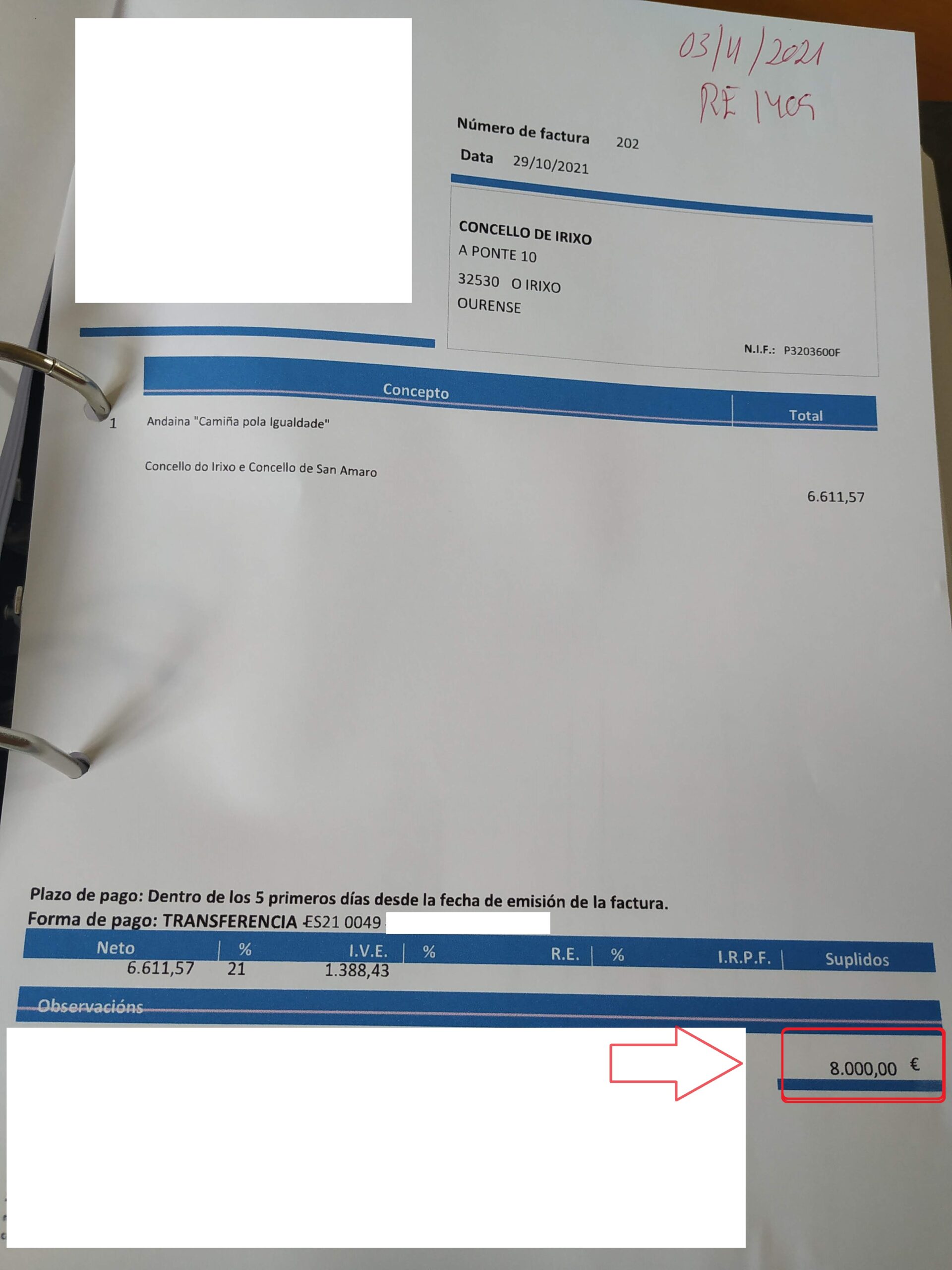 GASTOU 8 MIL EUROS da partida de “actividades extraescolares e transporte escolar” PARA RECAUDAR 845 EUROS, FOI O QUE FIXO O ALCALDE DO IRIXO nunha andaina celebrada chamada “Camiña pola igualdade” e a que puido ter acceso o portavoz socialista Iago Fariñas Valiña recentemente.