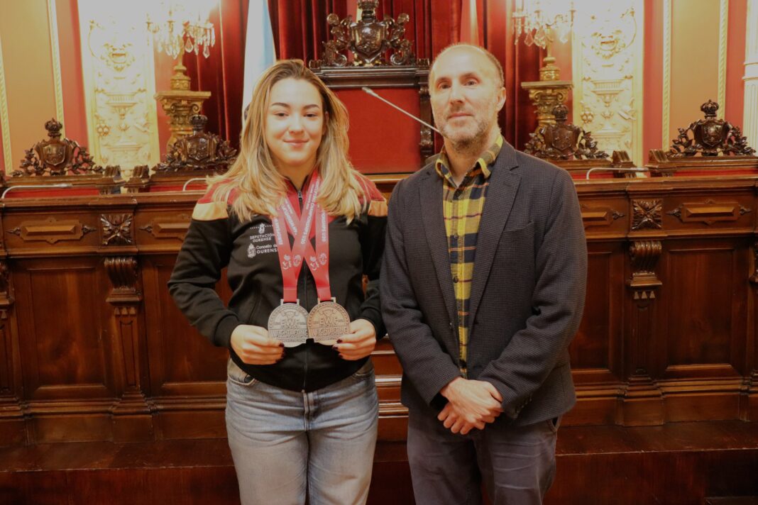 O alcalde de Ourense, Gonzalo P. Jácome, recibiu esta mañá no salón de plenos á halterófila ourensá, Uxía Romero, con motivo da súa recente participación no Campionato de Europa Júnior en Raszyn (Polonia), o pasado 29 de outubro.