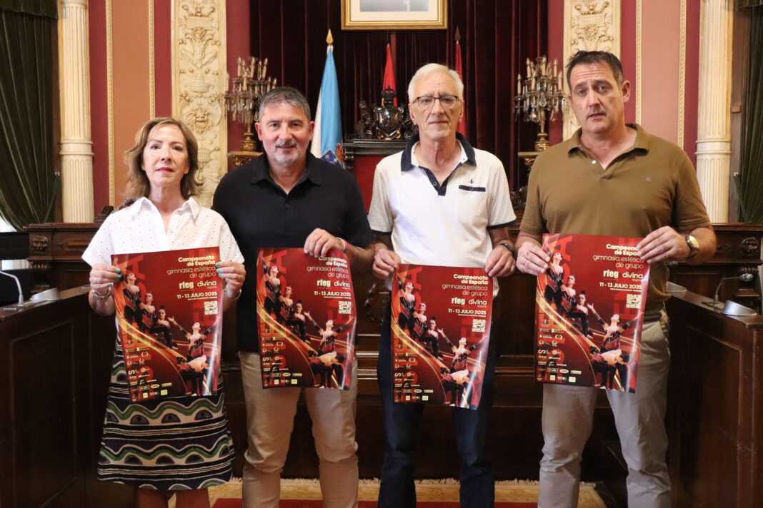 Máis de 500 deportistas participarán no Campionato de España de ximnasia estética de grupos, que se desenvolverá desde mañá venres, 11, até o domingo, 13 de xullo, no Pavillón Municipal dos Remedios. O salón de plenos do Concello acolleu esta mañá a presentación desta competición deportiva, organizada pola Real Federación Española de Ximnasia coa colaboración do Concello de Ourense, a Deputación Provincial e a Xunta de Galicia, entre outras entidades e empresas. No acto participaron o tenente de alcalde e concelleiro de Deportes, Aníbal Pereira, o xefe do Servizo de Deportes da Xunta en Ourense, Manuel Pérez, o presidente da Federación Galega de Ximnasia, José Manuel Estévez, e a presidenta do Club Ximnasia Pavillón, Carmen Blanco.