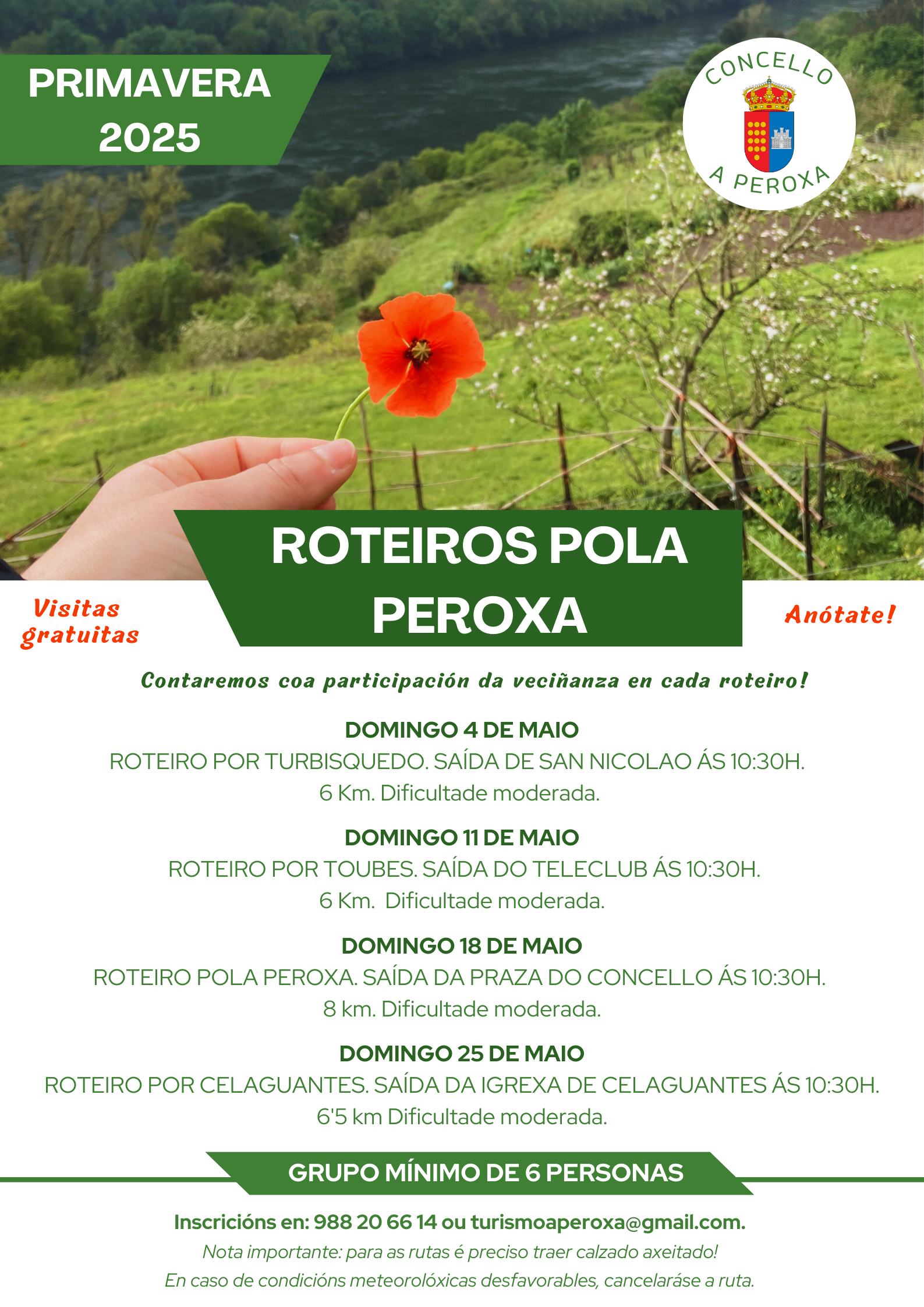 Para máis información, contactar nas oficinas municipais chamando ao 988 20 66 14 ou no enderezo electrónico turismoaperoxa@gmail.com