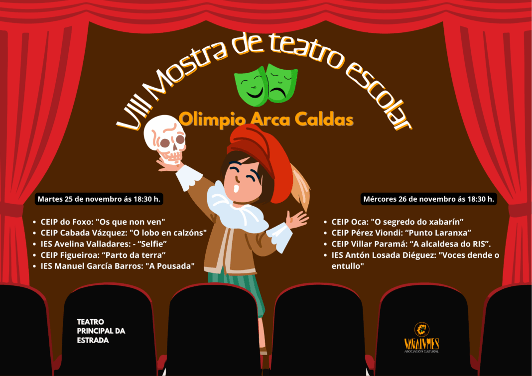 A Asociación Cultural “Vagalumes”, con motivo da conmemoración do aniversario de Olimpio Arca Caldas, e dentro do noso compromiso coa continuidade do seu labor de renovación pedagóxica e dinamización cultural, presentamos a VIII Mostra de Teatro Escolar que leva o nome do homenaxeado. Promotor deste tipo de actividade no ensino.
