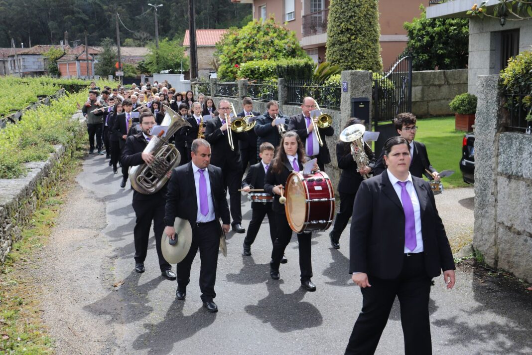 A choiva concedeulle unha tregua aos veciños e veciñas de Lantaño (Portas) para que poideran honrar a San Pedro Mártir concurrida procesión entre os cruceiros do Culebrón e de Paredes, á que acudiron o alcalde, Ricardo Martínez, e varios membros do equipo de goberno, así como a Banda de Música Unión de Lantaño.