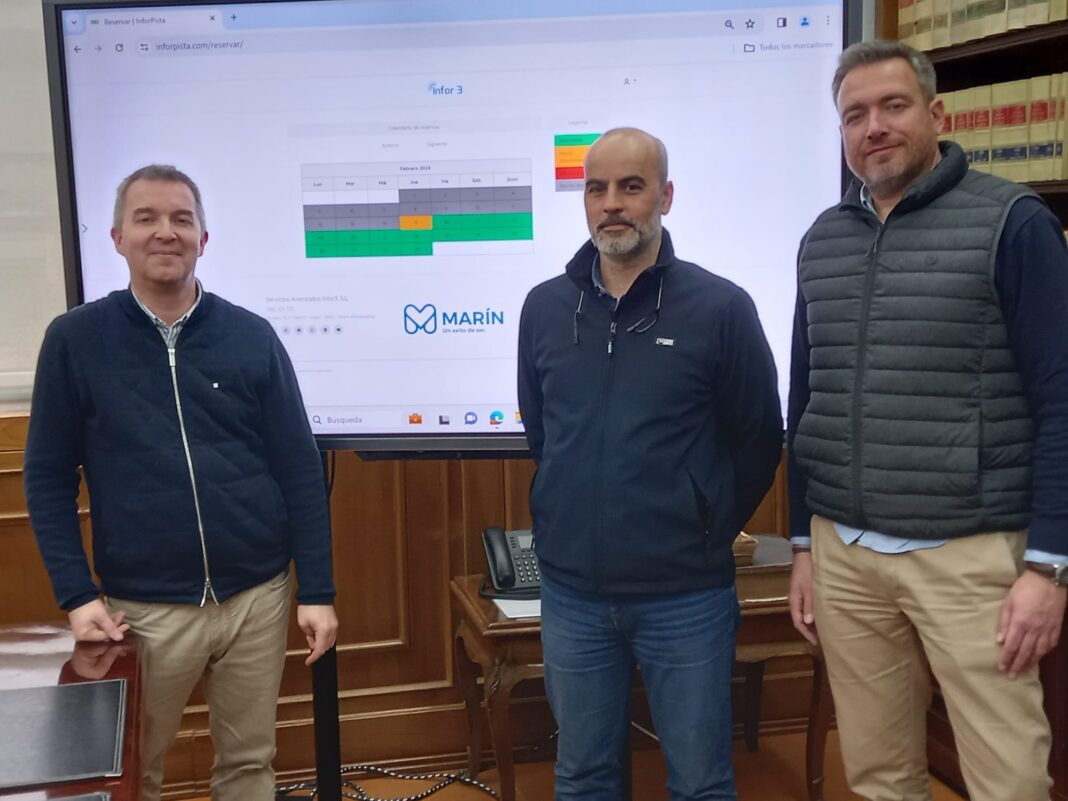 O concelleiro de Deportes, Antonio Traba, presentou esta mañá a web de InforPista xunto cos seus creadores, que desde xa permitirá facer as reservas da pista de tenis municipal de San Pedro de forma telemática. Unha demanda da todas as persoas que utilizan con moita frecuencia esta instalación deportiva. A empresa encargada da creación do portal foi Infor3 SL, ubicados en Moledo.