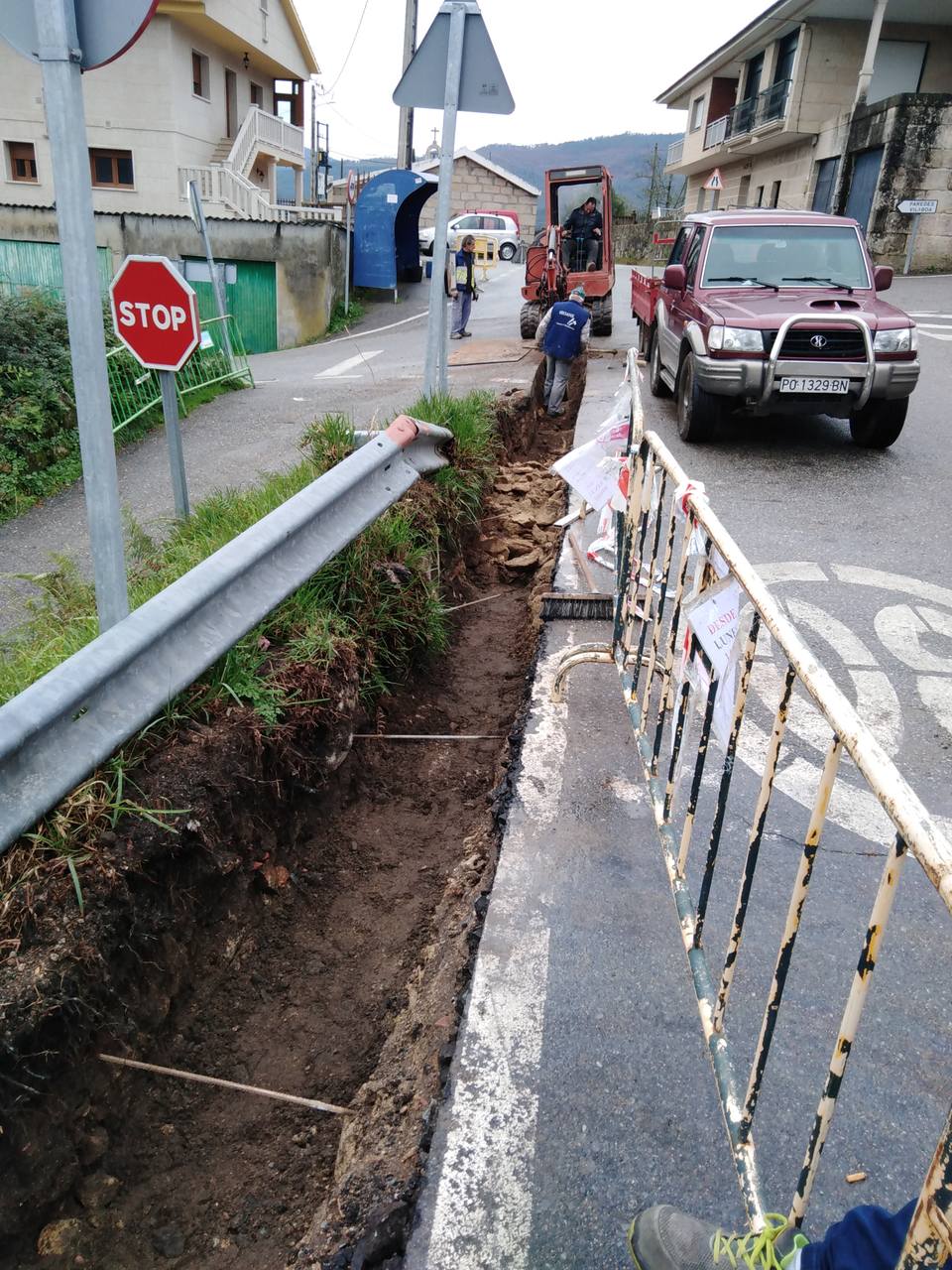 Muros de contención en Verducido, drenaxes en Canicouva, recollida de pluviais en Tomeza, bacheos en Campañó, Santo André de Xeve, Lérez… son algunhas das obras en marcha nestas primeiras semanas de servizo.