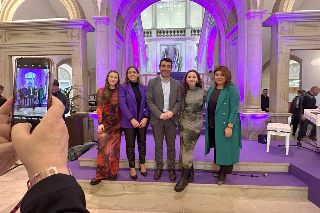 A Deputación de Pontevedra conmemorou este venres 8 de marzo o Día Internacional da Muller cun acto no vestíbulo do Pazo provincial no que a presidenta da Asociación Empresarias de Galicia, Susana Pérez Iglesias, encargouse de ler o manifesto e o grupo Fillas de Cassandra, de poñer a música a esta xornada para reivindicar a igualdade entre mulleres e homes. O presidente provincial, Luis López, abriu o acto cunha breve intervención na que fixo “un chamamento á unión, porque se esta ponte cara a igualdade cruzámola xuntas, chegaremos antes á meta”.