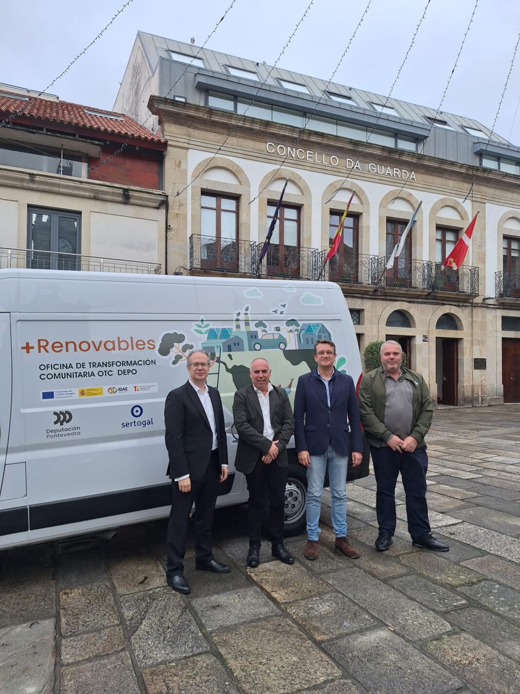 O deputado de Acción Comunitaria, Equipamentos Públicos e Finca Areeiro da Deputación de Pontevedra, Javier Tourís, visitou este martes na Guarda a oficina móbil do programa +Renovables, coa que a Deputación está a descentralizar os servizos que se prestan desde a Oficina de Transformación Comunitaria (emprazada no Viveiro de Empresas de Barro) para divulgar os beneficios das comunidades enerxéticas e implicar os pequenos concellos nos retos da sostibilidade.