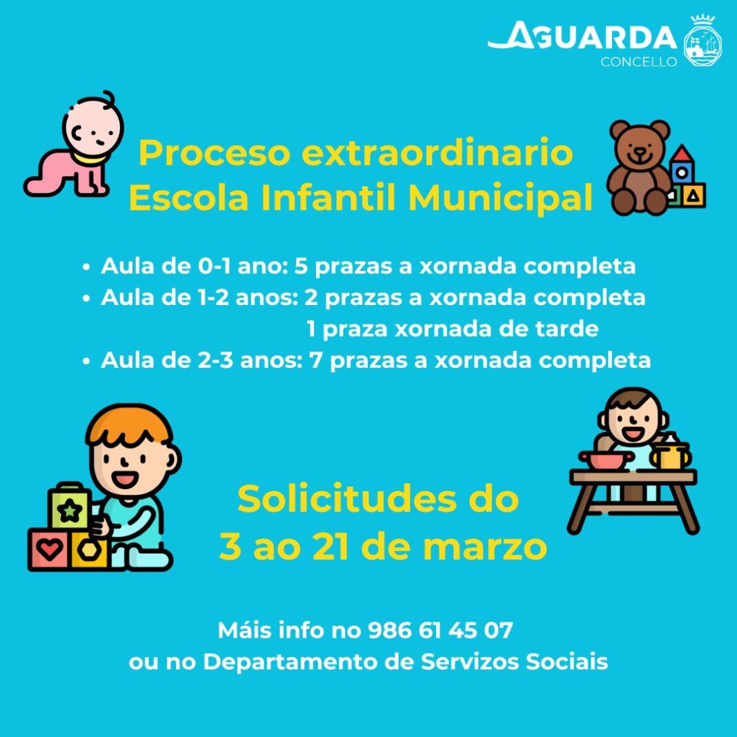 A Escola Infantil Municipal da Guarda abre o próximo día 6 de outubro de 2025 un proceso EXTRAORDINARIO para cubrir as seguintes prazas: