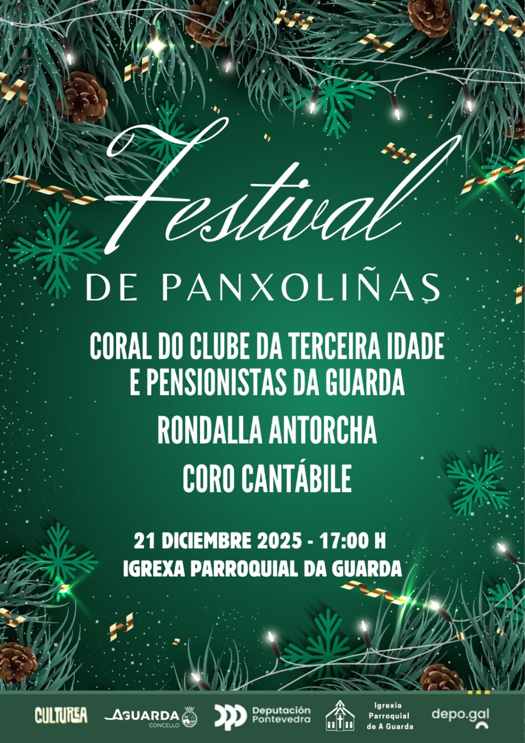 O domingo 21 a partir das 17:00h na igrexa parroquial, desfrutaremos das voces da Coral do Clube da Terceira idade e pensionistas da Guarda, de Rondalla Antorcha e do Coro Cantábile.