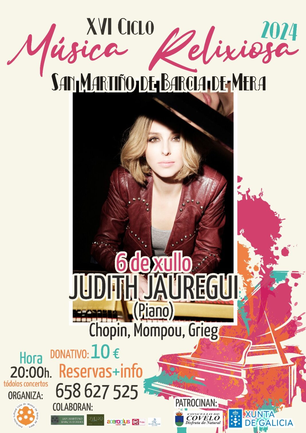 O Ciclo de Música Relixiosa de Barcia de Mera, Covelo, convida ao concerto de piano da afamada Judith Jáuregui este sábado na contorna máxica do conxunto abacial de Barcia de Mera.