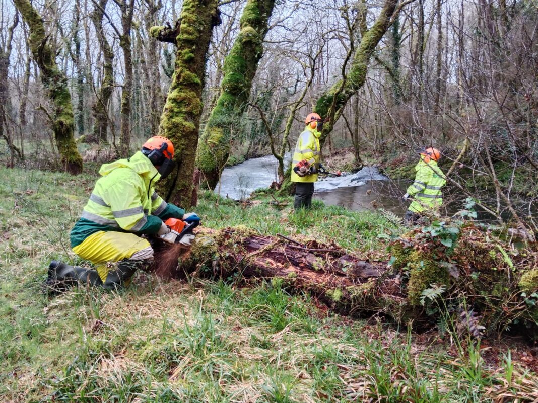 Os traballos céntranse na roza puntual e selectiva e na retirada de árbores e biomasa presente na canle para evitar atoamentos.