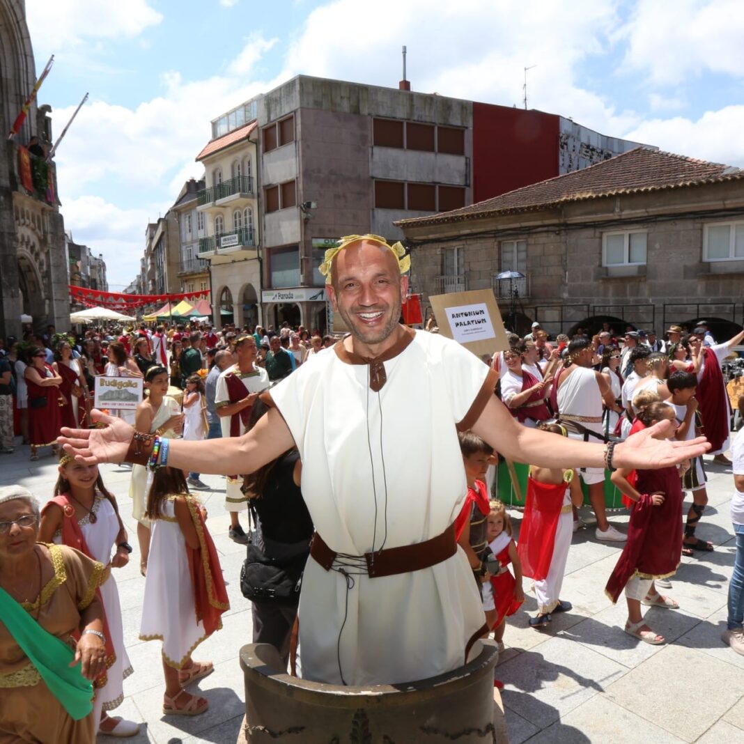 O inicio foi espectacular, cun desfile con máis de 150 persoas divididas en nove comparsas que representan galos, castrexos, romanos, exipcios e gregos. Cleopatra, Astérix, Obélix, Panorámix e todos e todas os participantes dos Xogos Olímpicos, acompañaron aos portadores da chama olímpica, o Rei Castrexo Pepo Suevos, o polifacético artista, Tonhito de Poi, e o influencer, Miguel Mandayo. Dende o templete da rede de San Luis, o desfile chegou ata a Praza Arquitecto Antonio Palacios, coa participación da Garda Romana (Legio X Gemina do Club Falcata), onde tivo lugar o acendido da chama olímpica e o destronamento simbólico do alcalde, Alejandro Lorenzo, por parte do rei castrexo.