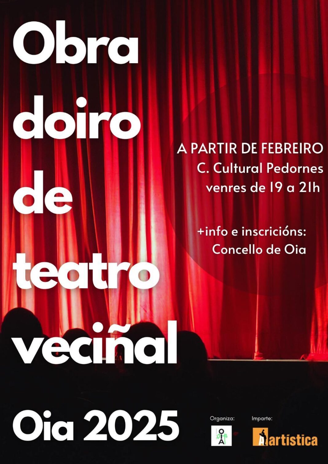 O Concello de Oia abre o prazo de inscrición para unha nova edición dos obradoiros de teatro veciñal infantil e para persoas adultas. Ao igual que aconteceu nas anteriores convocatorias, as sesións serán impartidas por A Artística Teatro & Danza os venres en horario de tarde.