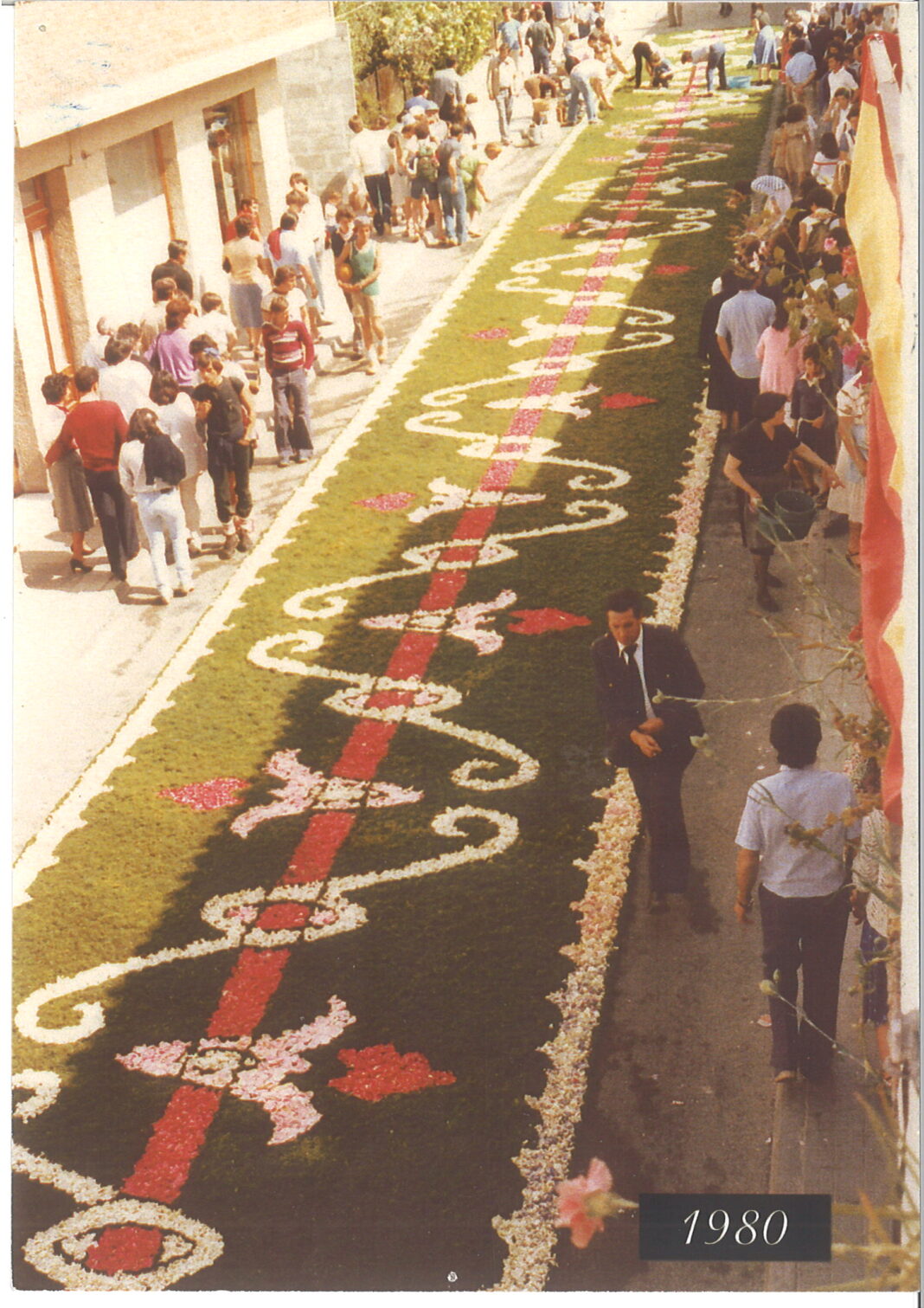A festa das alfombras conta con máis dun cento de anos de antigüidade, aínda que o auxe desta tradición podería situarse entre as décadas de 1940 e 1950. Un dos costumes que máis lembra a veciñanza da vila son as recoñecidas carrozas que desfilaban na procesión e que se preparaban na antiga carpintaría da fábrica Massó, que deixou de realizarse a comezos dos 70 co peche da conserveira.