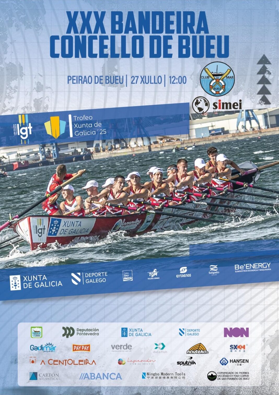 Primeiro desenvolverase a I Bandeira Praia de Pescadoira, que leva no seu título a reivindicación pola rexeneración da praia e a demanda da rampla para o club, e nela participarán os clubs da Liga B, concretamente CR A Cabana – Ferrol, CR Puebla, CR Chapela- Wofco B, Club do Mar Bueu Simei B e CR Salgado – Perillo. Despois será a XXX Bandeira Concello de Bueu de Traiñeiras, na que competirán os da Liga A, é dicir, CR Chapela Wofco, SD Samertolameu – Oversea, SD Tirán- Pereira, CM Castropol, Club do Mar Bueu Simei, CR Urme, CR Narón, CR Mecos, CM Mugardos, CR Cabo da Cruz e CCD Cesantes- Rodavigo.