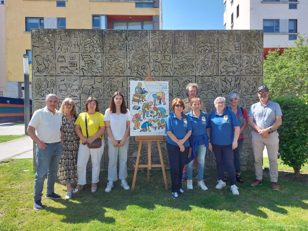 A menos dun mes para a celebración, o Concello de Bueu presentou este venres o cartel oficial da Festa das Alfombras Florais do Corpus 2024, nun acto no que estiveron presentes Carmen García, concelleira de cultura, Marc Taeger, artista que deseñou o cartel, e diversos alfombristas.