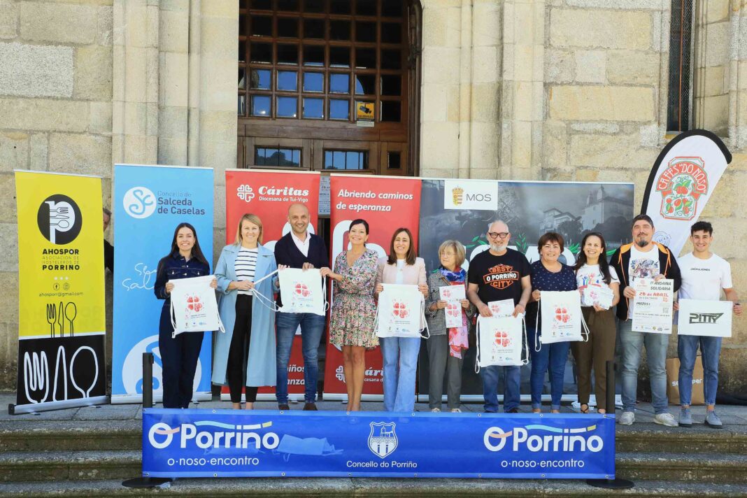 A andaina presentouse hoxe aos pés da Igrexa de Santa María do Porriño, que será punto de partida este sábado. O alcalde do Porriño, Alejandro Lorenzo, a alcaldesa de Mos, Nidia Arévalo, e a alcaldesa de Salceda de Caselas, Loli Castiñeira, presentaron a actividade xunto cos representantes de Cáritas Parroquial, Pepi Rodriguez, Sugui e Beatriz Correa, hostaleiros e o Dj Pitty, que animará o fin da camiñata.