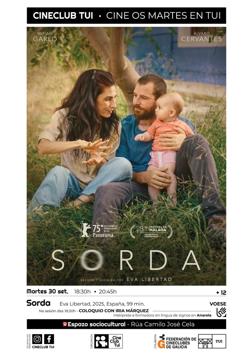 Próximo al Día Internacional de las Personas Sordas, Cineclub Tui invita a una sesión cinematográfica especial el martes 30 de octubre en el Centro Socio-Cultural Camilo José Cela para descubrir Sorda, película dirigida por Eva Libertad, preseleccionada para los Oscar 2025 y aclamada en festivales internacionales.
