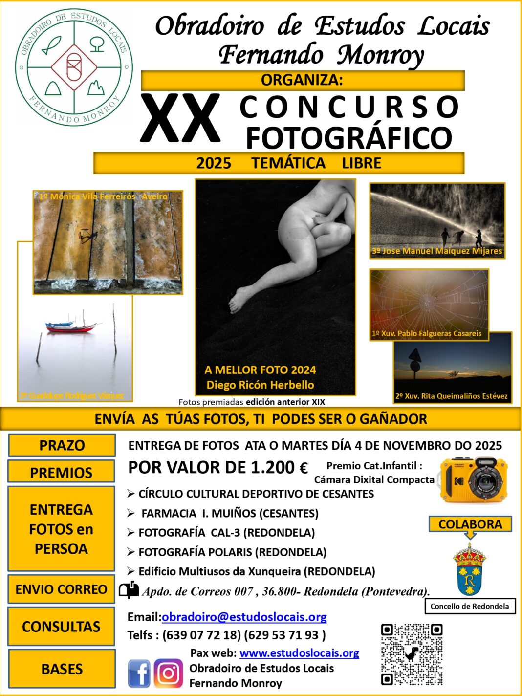 O Obradoiro de Estudos Locais Fernando Monroy lanza unha nova edición do seu certame de fotografía que na edición de 2025 chega con dúas novidades principais. A primeira é o incremento dos premios ata os 1.200 euros. A segunda é a creación dunha nova categoría infantil ata os 12 anos de idade. A idea é fomentar a toma de instantáneas en familia e converter a participación no concurso nunha actividade colectiva.