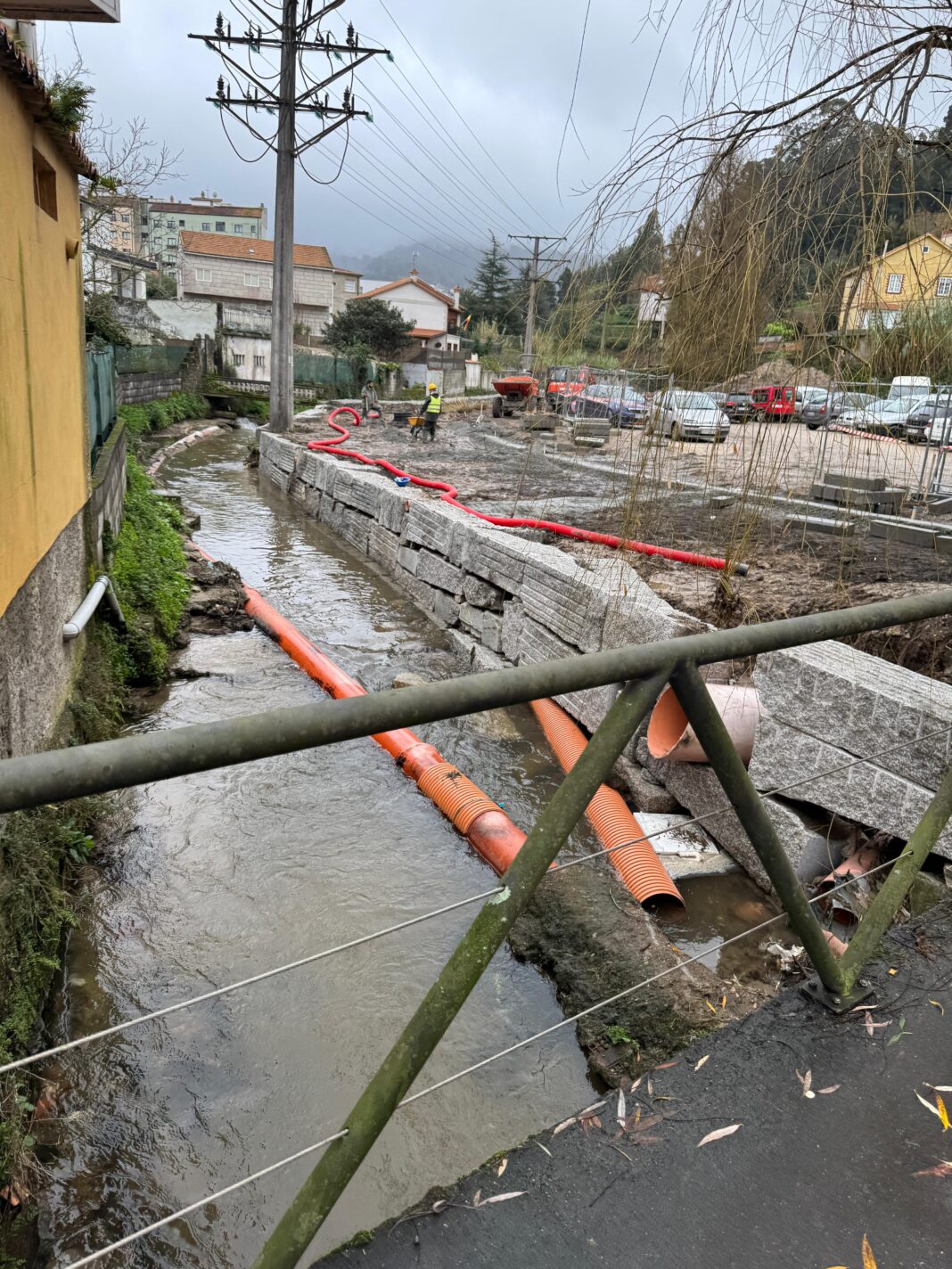 As obras de mellora do saneamento do río Lameira continúan o seu curso e xa están traballando á altura de Ponte Zapal. Este é un ambicioso proxecto, financiado con máis de 3 millóns de euros pola Xunta de Galicia, que se centra en toda a rede de augas residuais da cunca do Lameira, que finaliza no bombeo do mesmo nome.