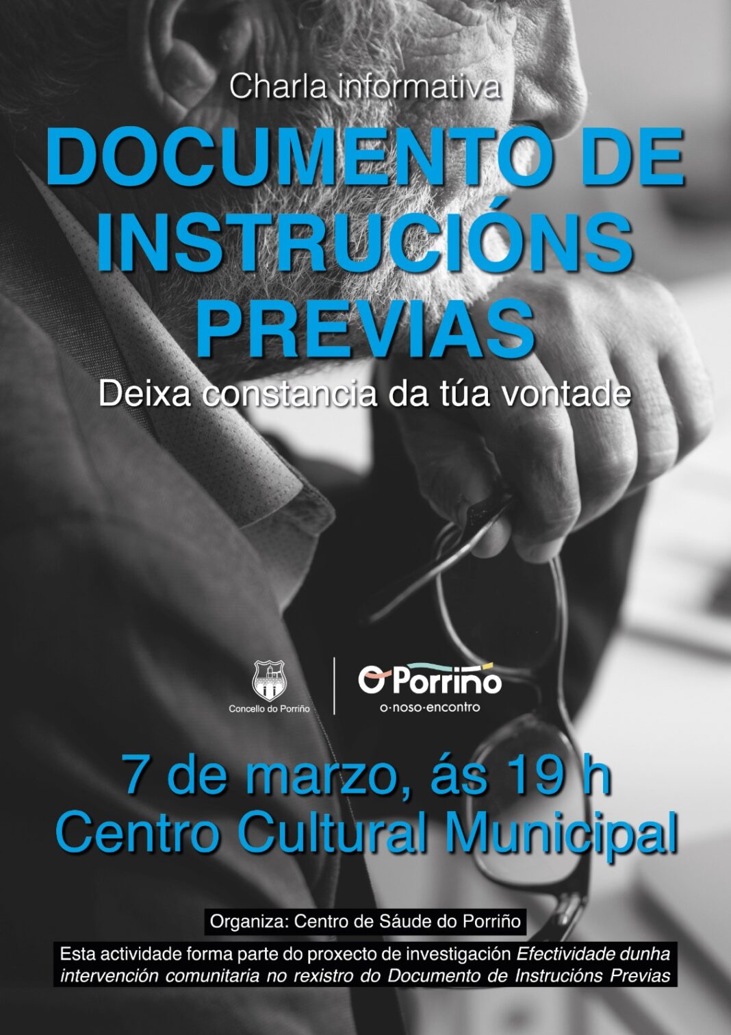 O Centro Cultural acollerá o 7 de marzo unha charla informativa sobre o documento de instrucións previas organizada polo Centro de Saúde do Porriño coa colaboración do Concello.