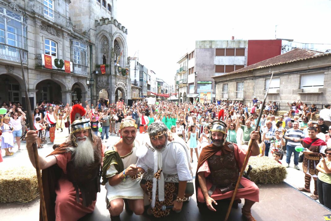 As charangas Vai de Baile e Anchoa, xunto con Batucada Os Vikingos, amimaron as rúas da vila ata que a mediodía deu comezo o gran desfile olímpico das ANPAS e asociacións do Porriño, encabezado pola Garda Pretoriana e con máis de 150 integrantes de 9 comparsas nos seus roles das civilizacións da Porrigalia.