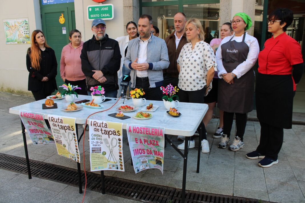 O alcalde de Caldas de Reis, Jacobo Pérez, participou este martes na presentación da primeira edición da Ruta de Tapas de Caldas de Reis, unha proposta impulsada desde a Asociación de Hostalería, en colaboración co Concello, que nace co obxectivo de dinamizar o sector e amosar a creatividade gastronómica dos locais participantes. A cita terá lugar durante a vindeira fin de semana, desde o venres 27 ata o domingo 29 de marzo, e as tapas custarán 3 euros, bebida aparte. Os establecementos que toman parte nesta primeira cita culinaria son Bar Torque, De Roxos, Nº2, Hotel Restaurante Sena, Hamburguesería La Burguer, Hotel Pousada Real, Restaurante Roquiño, Nuevo Varadoiro, Mesón Bermaña e O Encontro. As persoas que se animen a probar as especialidades aspirarán a diferentes agasallos, en función do número de consumicións. En cada un dos locais haberá un cartón dispoñible para sellar unha consumición por negocio. A clientela que chegue a cinco sellos entrará no sorteo dun vale de 60 euros para gastar entre estes establecementos. Se se completa o ‘tour’ das dez tapas, a opción será conseguir dous abonos para a vindeira edición do Festival PortAmérica.