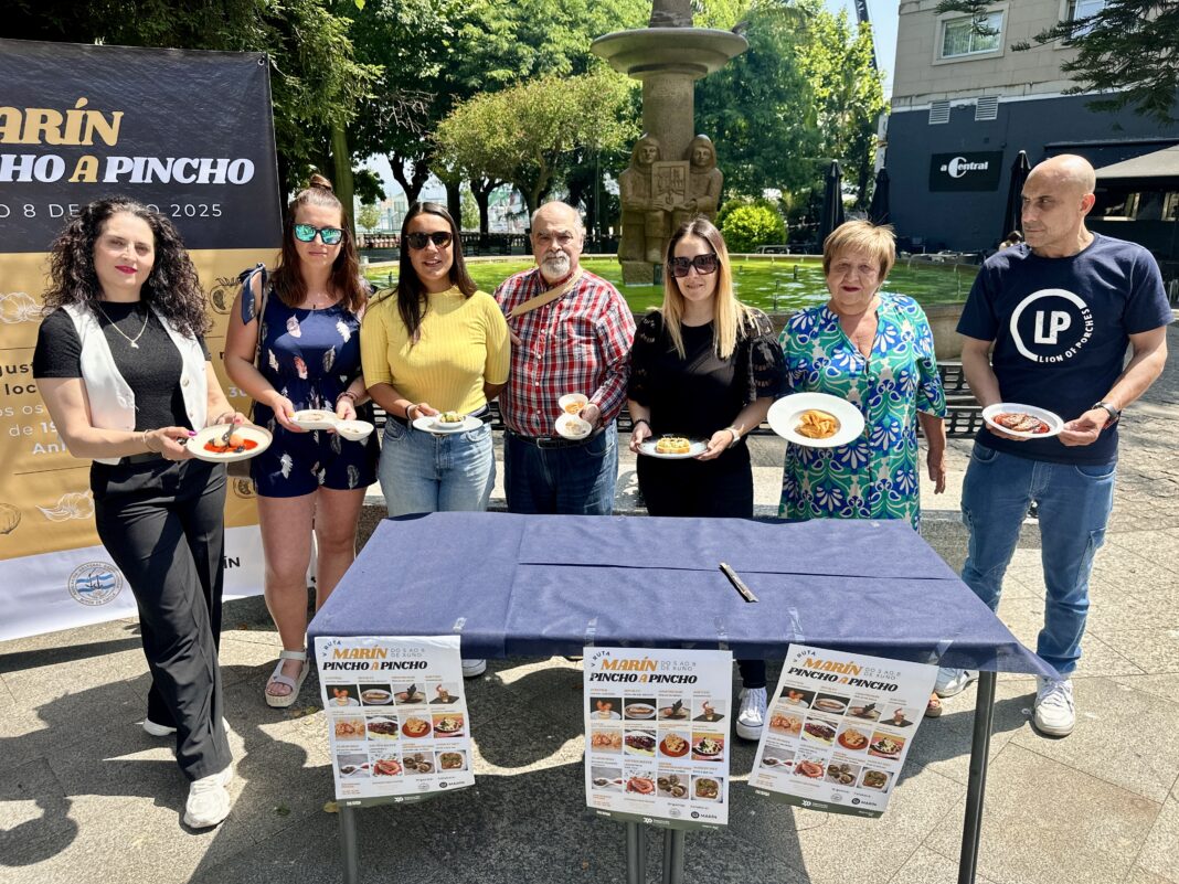 A Alameda Rosalía de Castro acolleu esta mañá a presentación da V Ruta Marín Pincho a Pincho, unha iniciativa gastronómica promovida pola Asociación Botón de Ancla e que cada ano suma novos participantes.