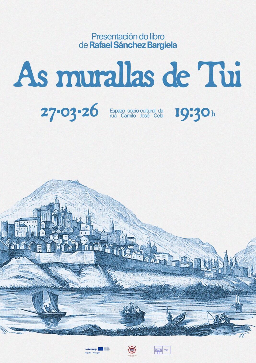 “A murallas de Tui” do historiador tudense Rafael Sánchez Bargiela será presentado este venres, 27 de marzo, ás 19.30h no Espazo Sociocultural da rúa Camilo José Cela. Esta publicación vén de ser editada polo Concello de Tui ao abeiro do proxecto europeo Interreg Poctep “FarPax” no que participa o concello tudense.
