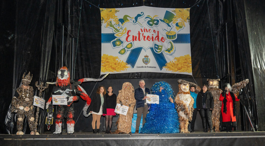 Os membros do xurado valoraron a orixinalidade, o emprego de materiais reciclados, a complexidade na confección, a orixinalidade e a mensaxe ou relato do disfraz e deste xeito entregaron na categoría adultos o 1º premio a “A dama de azul”, feito con botellas de plástico reciclado; o 2º a “Moucho e curuxa” realizado con máis de 1.000 plumas naturais de galo e galiña; o 3º premio a “O pelo máis longo do mundo” confeccionado con corcho de botellas de vidro e elementos vexetais; o 4º premio a “Doutro planeta” pola súa creatividade e dificultade na montaxe e o 5º premio a “O señor das bateas” no que se reciclaron e coseron cunhas de mexilón e vieira en homenaxe á terra de procedencia do autor.