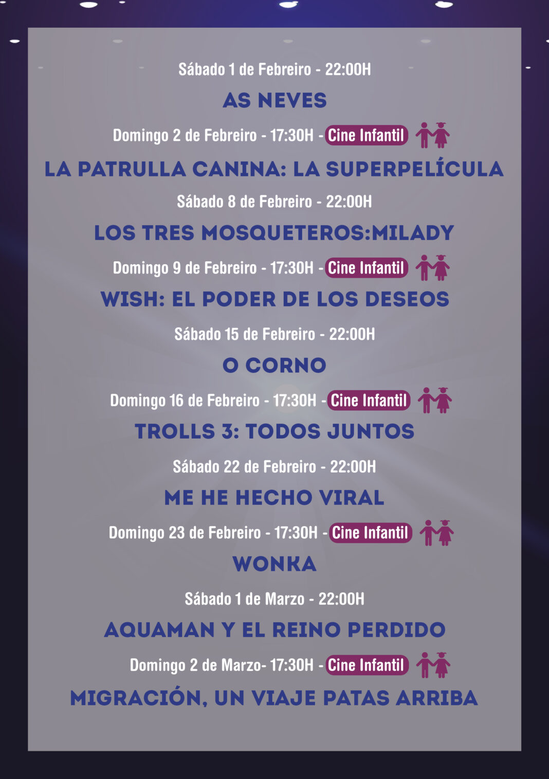 O Ciclo Cine de Inverno remata o vindeiro 2 de MARZO. Ata entón o público poderá gozar dunha oferta diferente tal e como se pode ver no cartel.