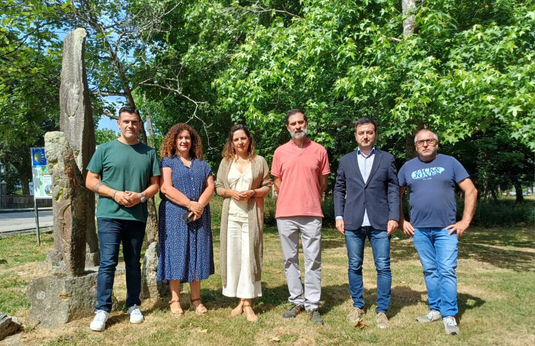 Leopoldo Costas e Julia Loureiro, concelleiros do Concello de Mos, Sandra González, Presidenta da AD Galicia Suroeste Eurural e Luciano Otero, Representante Institucional do Xeodestino Galicia Suroeste, xunto co representante da empresa contratista e o director da obra, realizaron unha visita ás localizacións dos elementos patrimoniais, coincidindo co acto de reformulo e inicio da obra de iluminación.