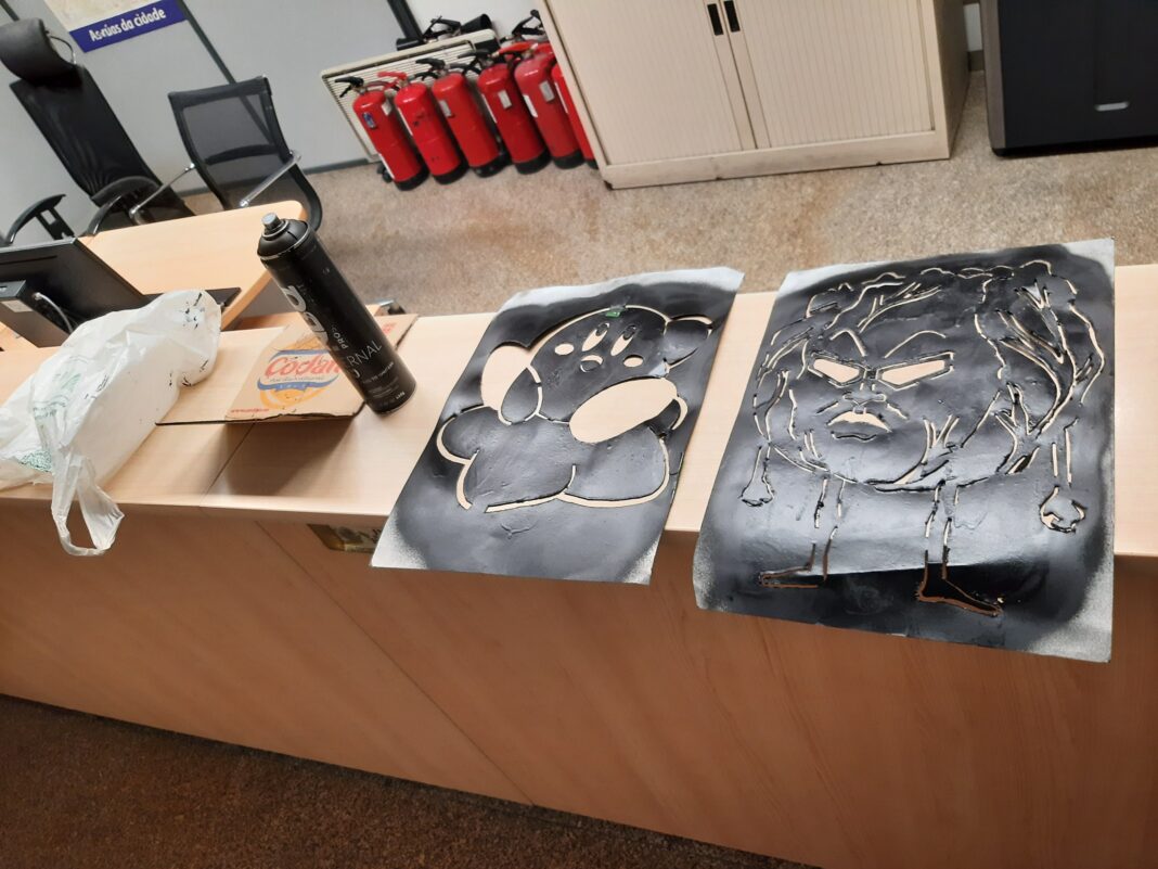 Os axentes atoparon dúas plantillas con pintura aínda fresca e o home tiña as mans pintadas de negro, ademais de levar un sprai de facer pintadas nunha bolsa.