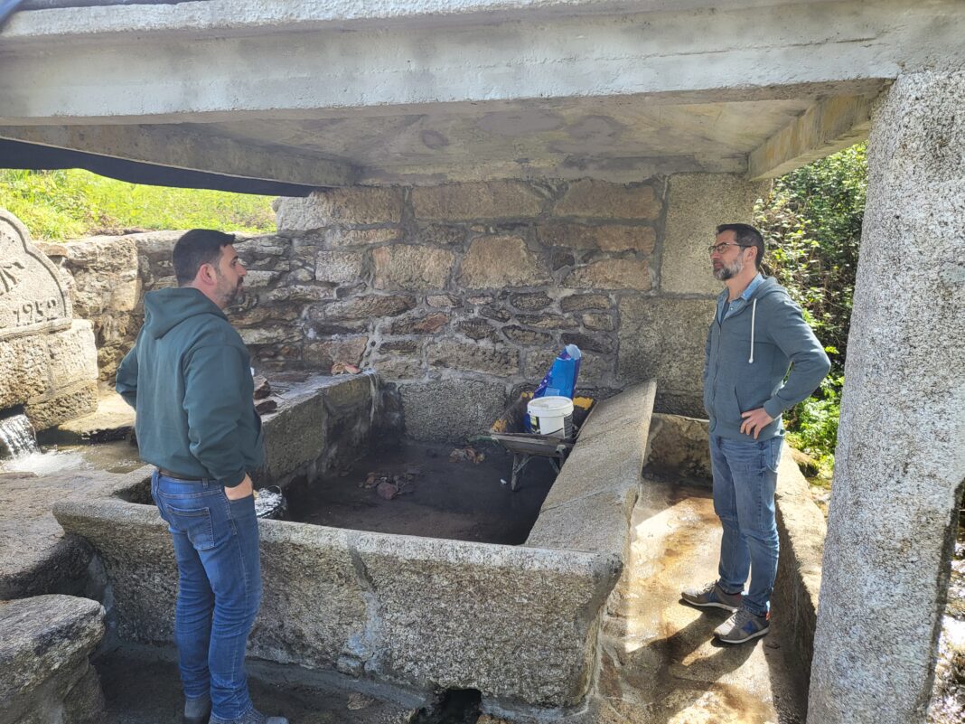 O Alcalde Luciano Otero e o Concelleiro de Vías e Obras Rodrigo González revisaron como van as obras do histórico lavadoiro da parroquia de Xunqueiras, que actualmente está a ser restaurado.