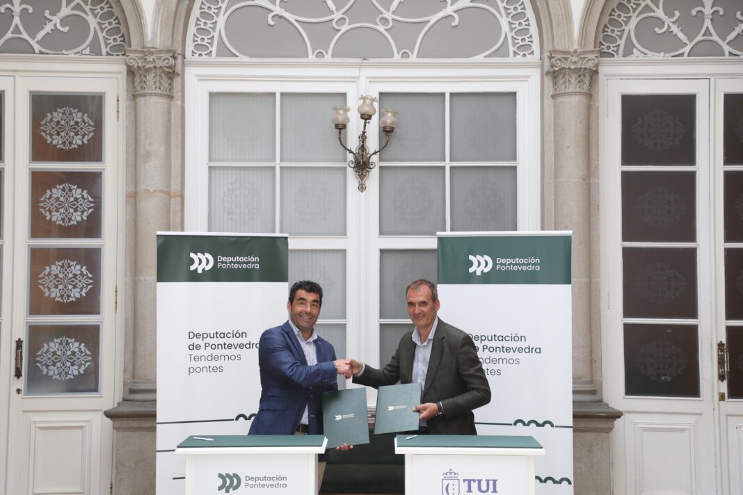 O presidente da Deputación de Pontevedra, Luis López, vén de asinar o convenio de colaboración coa alcalde de Tui, Enrique Cabaleiro, para executar a reforma urbana da Rúa Coruña. Un acordo asinado no marco do Plan Extra, o novidoso plan de investimentos do goberno provincial que mobiliza ata 38 millóns de euros entre os concellos de menos de 50.000 habitantes da provincia para executar proxectos estratéxicos. No Pazo provincial, López e Cabaleiro selaron un acordo a través do cal o organismo provincial financia o 100 % dun proxecto valorado en 950.000€, cunha achega de 712.400€ a través do Plan Extra e co aporte de 237.500€ para cubrir a parte correspondente do Concello a través do Plan +Provincia. Unha mostra, segundo indicou o presidente, dos froitos da combinación dos recursos de dous programas de cooperación impulsados polo organismo provincial para cooperar cos concellos na execución de proxectos estratéxicos para mellorar os espazos urbanos.