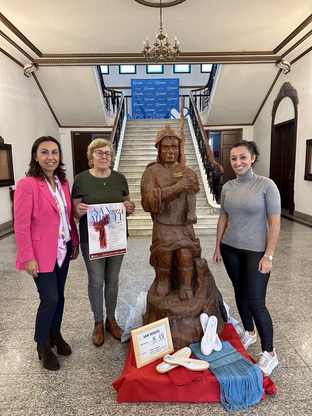 As fitas de cores brancas, azuis e vermellas e unha escultura feita polo escultor Marcos Mariño decoran desde hai semanas a vila marinense para a celebración o 29 de setembro do gran Día de San Miguel e a súa Danza de Espadas, unha festa de interese turístico de Galicia que foi presentada pola alcaldesa, María Ramallo, a concelleira, Marián Sanmartín, e a vicepresidenta do Ateneo Santa Cecilia, Isabel Martínez Epifanio.