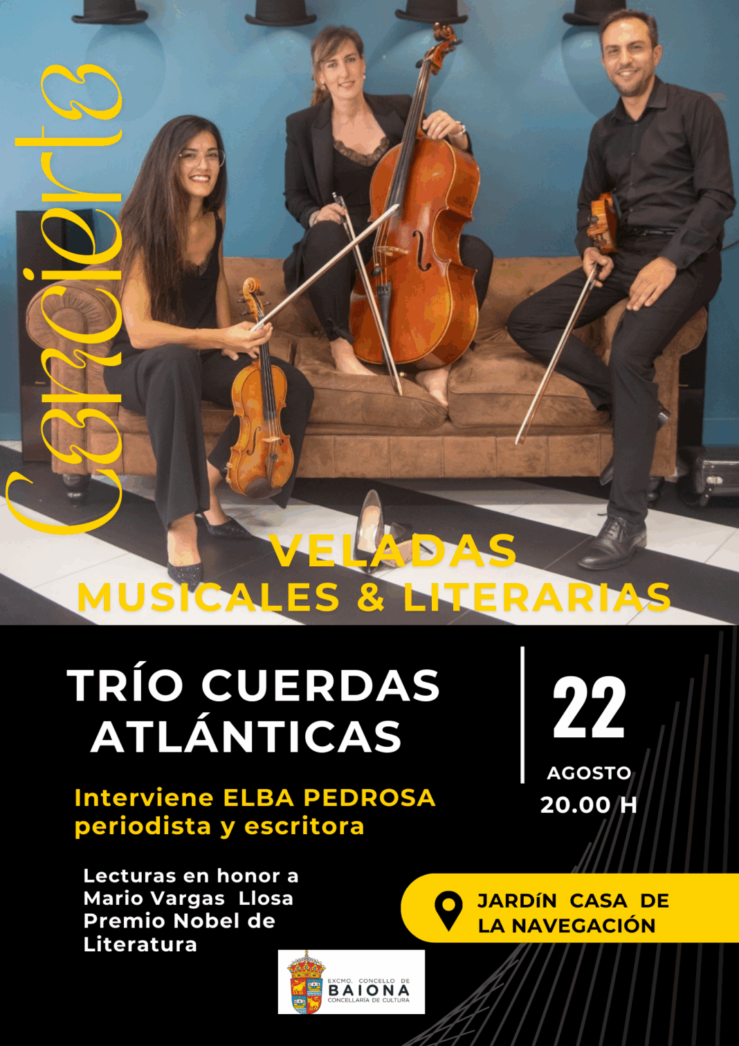 Desde pezas de ABBA, Zimmer ou Queen, ata o Ave María de Caccini ou Volver de Gardel. Unha hora de concerto a cargo dos violíns de Loida Díaz, axuda de concertino na Sinfónica Vigo 430, e Eduardo Rey, con amplo percorrido musical e docente do Conservatorio Profesional de Tui, e do violoncelo de Elena Pintos, membro da Orquestra Clásica de Vigo.