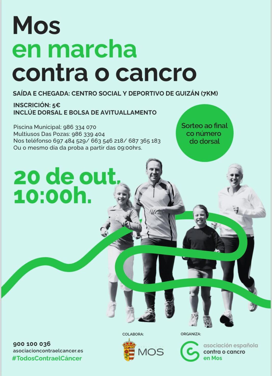 Trátase da andaina ‘En marcha contra o cancro’ para todos os públicos, e para a que é precisa inscrición previa, na que se pode andar en solidariedade con esta boa causa. Terá saída e chegada ao Centro Social e Deportivo de Guizán. Celebrarase o domingo 20 de outubro ás 10.00 horas da mañá. A lonxitude total do percorrido é de 7 quilómetros.