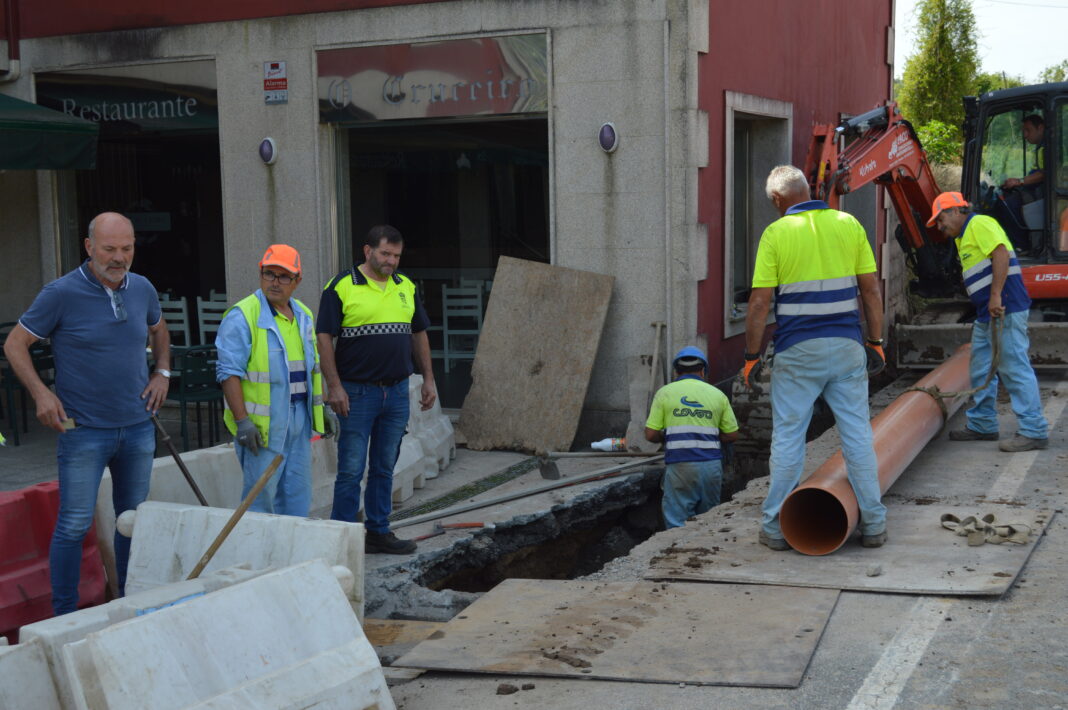 O tenente de alcaldesa e concelleiro de Obra Pública, Camilo Grandal, e o edil de Servizos Públicos, e da parroquia de Louredo, Baldomero Lorenzo, supervisaron as obras de acometida da rede de saneamento no entorno da Estrada N-550 ao seu paso por Louredo.
