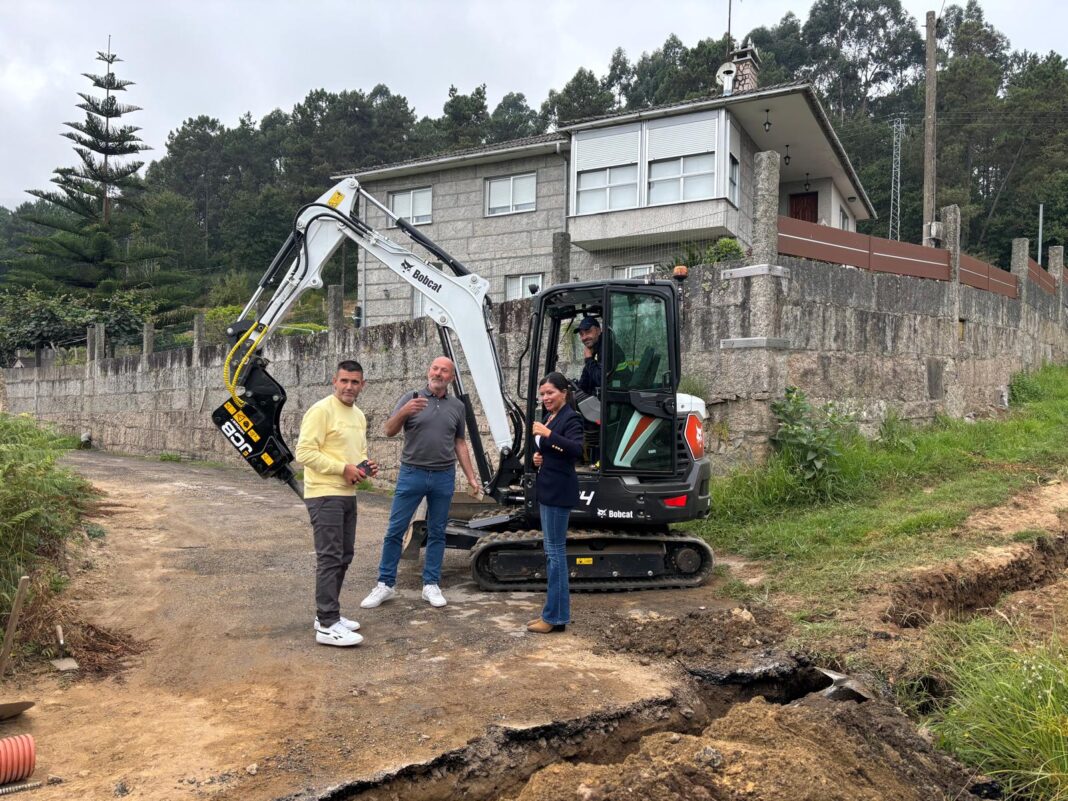 A alcaldesa de Mos, Nidia Arévalo, e o seus tenentes de alcaldesa, Camilo Grandal e Leo Costas, visitaron as obras de acometida da rede de saneamento no Camiño de Ansar que desde o Concello se están a realizar con fondos propios municipais, e nas que se está a estrear a nova mini escavadora que a administración local adquiriu grazas á concesión dunha subvención, a través da Liña 1 do Plan +Provincia da Deputación de Pontevedra. O importe da axuda, que financia a totalidade do importe da maquinaria, ascende a 60.560,50 euros.