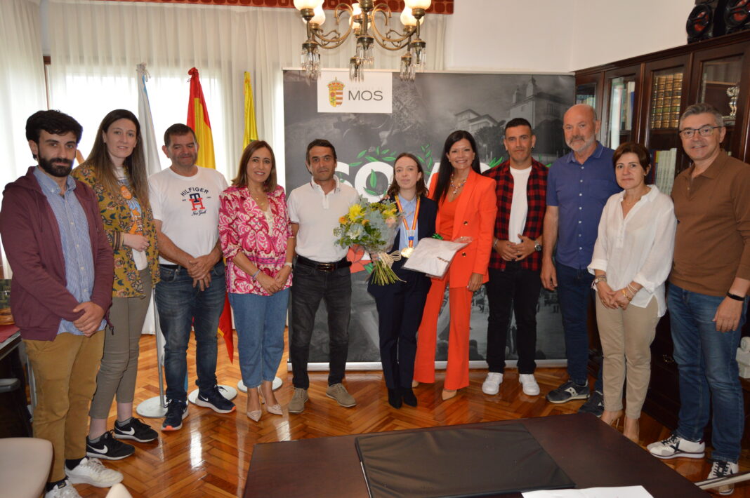 A mosense de 21 anos e natural da parroquia de Cela, Laura Pereira Ramilo, foi recibida hoxe procedente de Barcelona e tras uns días de descanso xunto á súa familia, pola alcaldesa de Mos, Nidia Arévalo, o tenente de alcaldesa, Camilo Grandal, e demais membros da Corporación Municipal. O motivo do acto de recepción, celebrado no salón de sesións da Casa Consistorial, foi felicitala e homenaxeala pola victoria que obtivo o pasado mes de abril nas Olimpiadas Nacionais de Formación Profesional, Spainskills.