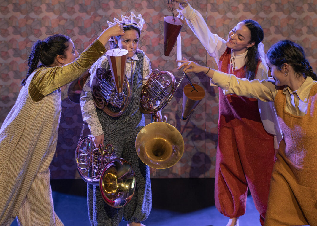 Neste espectáculo, dirixido á primeira infancia, propoñen aprender a descubrir pouco a pouco a forma e a sonoridade dun instrumento musical: a trompa. As partes deste instrumento están agochadas polo escenario e as catro instrumentistas terán que atopalas para poder facer música con el. Finalmente construirán a trompa e con ela xogarán coas cores e melodías de diferentes pezas musicais nun concerto que estimula o sentido da vista e do oído. Ao longo dos 34 minutos da función a trompa será a canle para crear diferentes ambientes e movementos inspirados en animais como un paxaro, un felino, o mundo oceánico e un elefante. A dirección corresponde a Laura Sarasola.