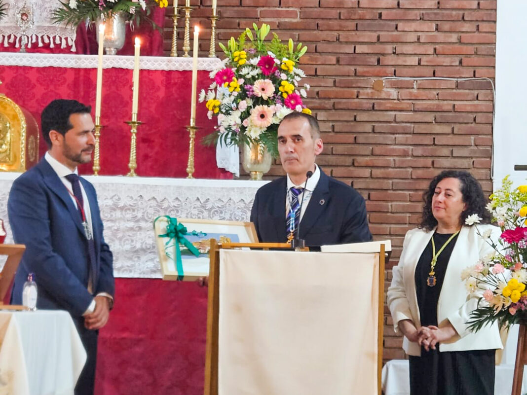 Na noite do pasado venres, 16 de maio, o rexedor tudense asistiu ao actos protocolarios da lectura do pregón cos que se abre esta romaría. Nos mesmos tamén participou a alcaldesa de Cortegana, María del Mar Martín Florido, municipio ao que pertence a localidade de Minas de San Telmo, xunto con outras autoridades da comarca.