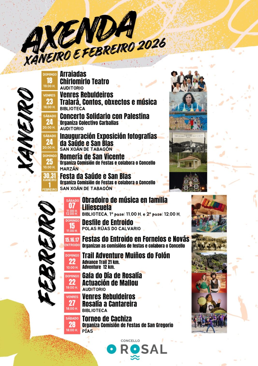 A alcaldesa do Rosal, Ánxela Fernández Callís, salientou que “comezamos o ano con forza, coa mirada posta na cultura, na convivencia e na participación veciñal, elementos que fan do Rosal un municipio vivo e dinámico. Esta programación está pensada para que ninguén quede atrás e que cativada, mocidade, persoas adultas e maiores teñen espazos de encontro e desfrute ao longo de todo o ano”.