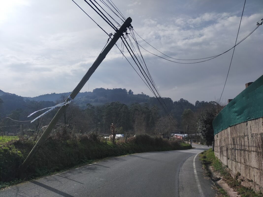 Santos destaca que o poste está apoiado sobre o cabreado de comunicación e, debido á súa inclinación, os cables colgan sobre a estrada, aumentando o risco de ser atrapados por calquera vehículo elevado que transite pola vía. Asemade, esta situación é preocupante para a veciñanza debido ao risco significativo que supón para a seguridade de peóns e condutores.