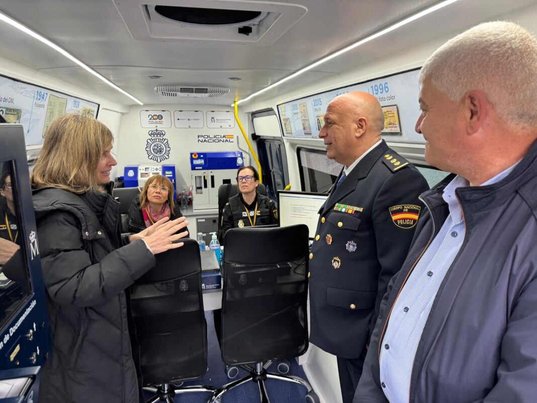 A unidade móbil da Policía expediu hoxe os primeiros dnis de trámite áxil e inmediaA alcaldesa Nava Castro e o tenente de alcaldesa, Juan Carlos Glez. Carrera, visitaron hoxe xunto ao comisarío da Policía Nacional, Ramiro J. Gómez, a unidade móbil de tramitación do servizo de vehículos integrais de Documentación -VIDOC- para a expedición de documentación. Esta unidade móbil permite a expedición do DNI e do pasaporte de forma instantánea. Deste xeito evítanse desprazamentos a outros concellos e axilízase a tramitación.