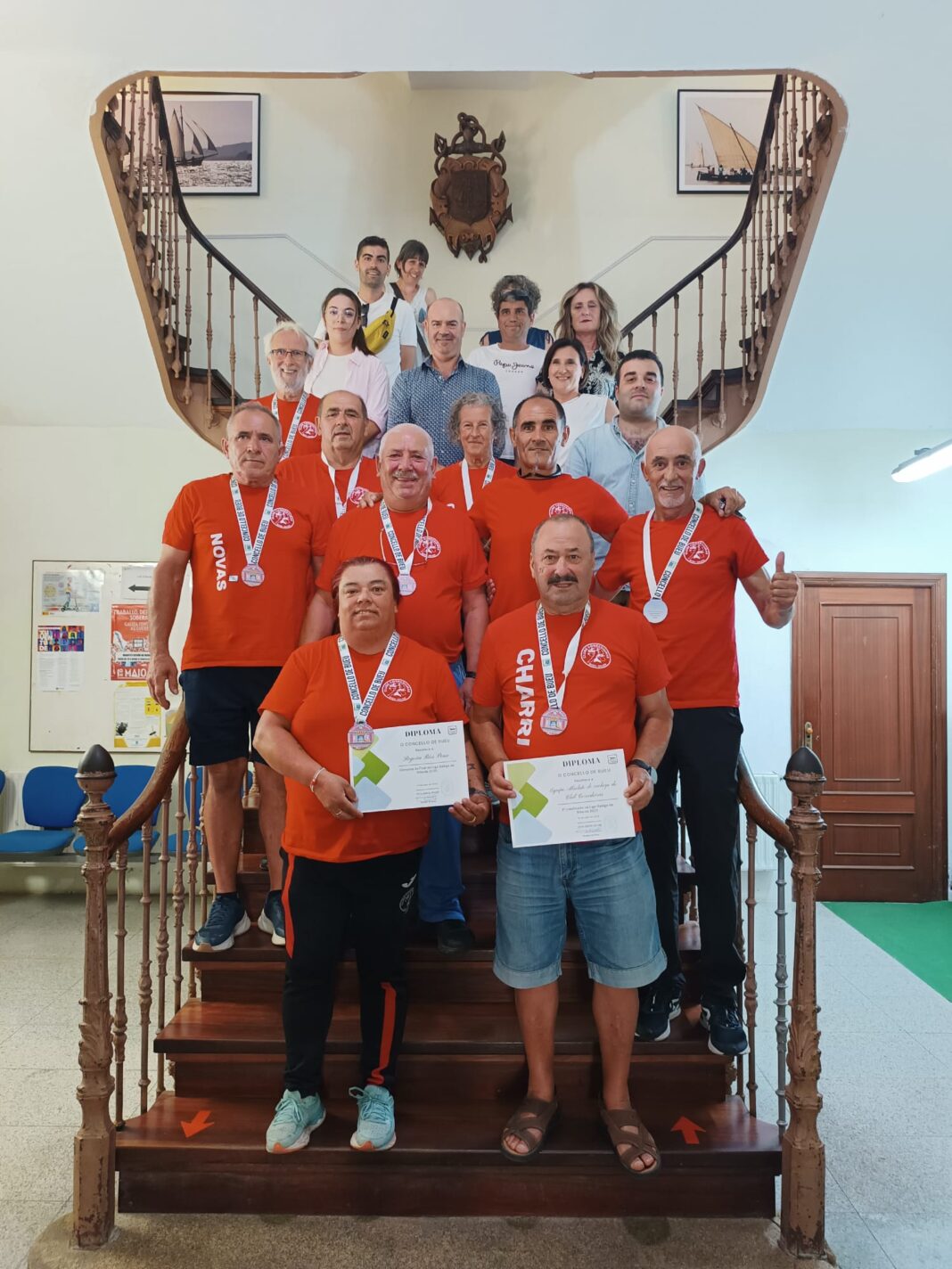 Os concelleiros e concelleiras da corporación fixéronlles entrega aos e ás deportistas dunhas medallas en lembranza deste día e dos éxitos acadados.