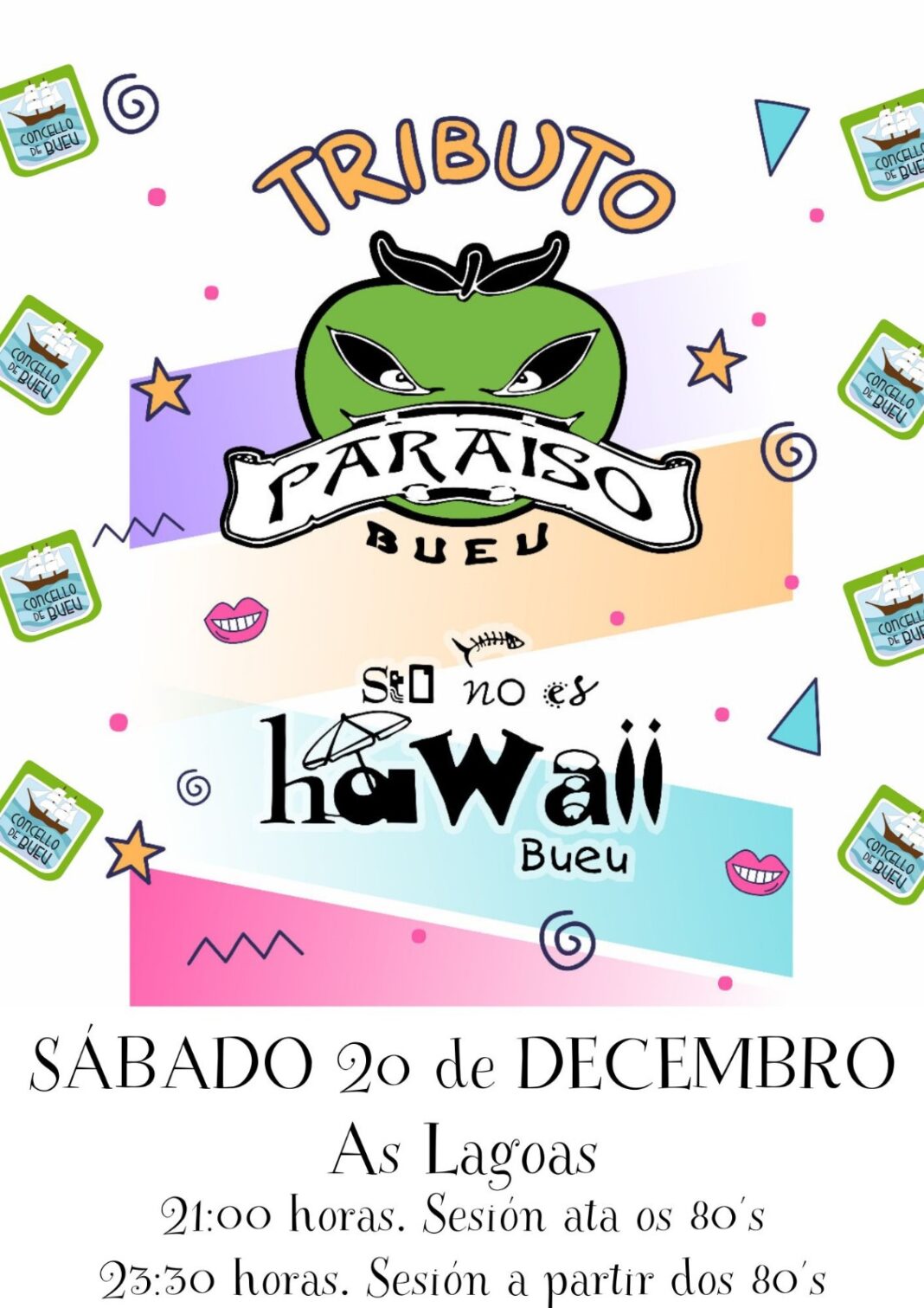 Despois do éxito da edición do pasado ano, o Concello de Bueu volverá repetir a festa en homenaxe á Sala Paraíso, que se celebrará o sábado 20 de decembro na carpa de As Lagoas, e na que se escoitarán as diversas músicas que lembran a un dos locais nocturnos máis míticos da historia bueuesa. O evento comezará ás 21.00 horas e nel haberá música para todos os públicos, servizo de barra con locais de ocio nocturno da vila e moita diversión.