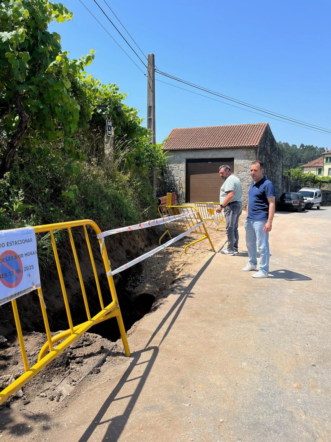 O alcalde de Caldas de Reis, Jacobo Pérez, vén de supervisar os traballos que o Concello iniciou esta semana no núcleo de Eirín, dentro dunha actuación encamiñada a renovar un tramo da rede de de saneamento nesta zona. Tal e como recorda o propio rexedor, que estivo acompañado na visita polo edil de Medio Ambiente, Juan Carlos Ortigueira, esta é unha obra importante, xa que serve para dar resposta a unha demanda veciñal que “se non se fixo antes foi porque era preciso cumprir con todos os requisitos e permisos administrativos correspondentes”.