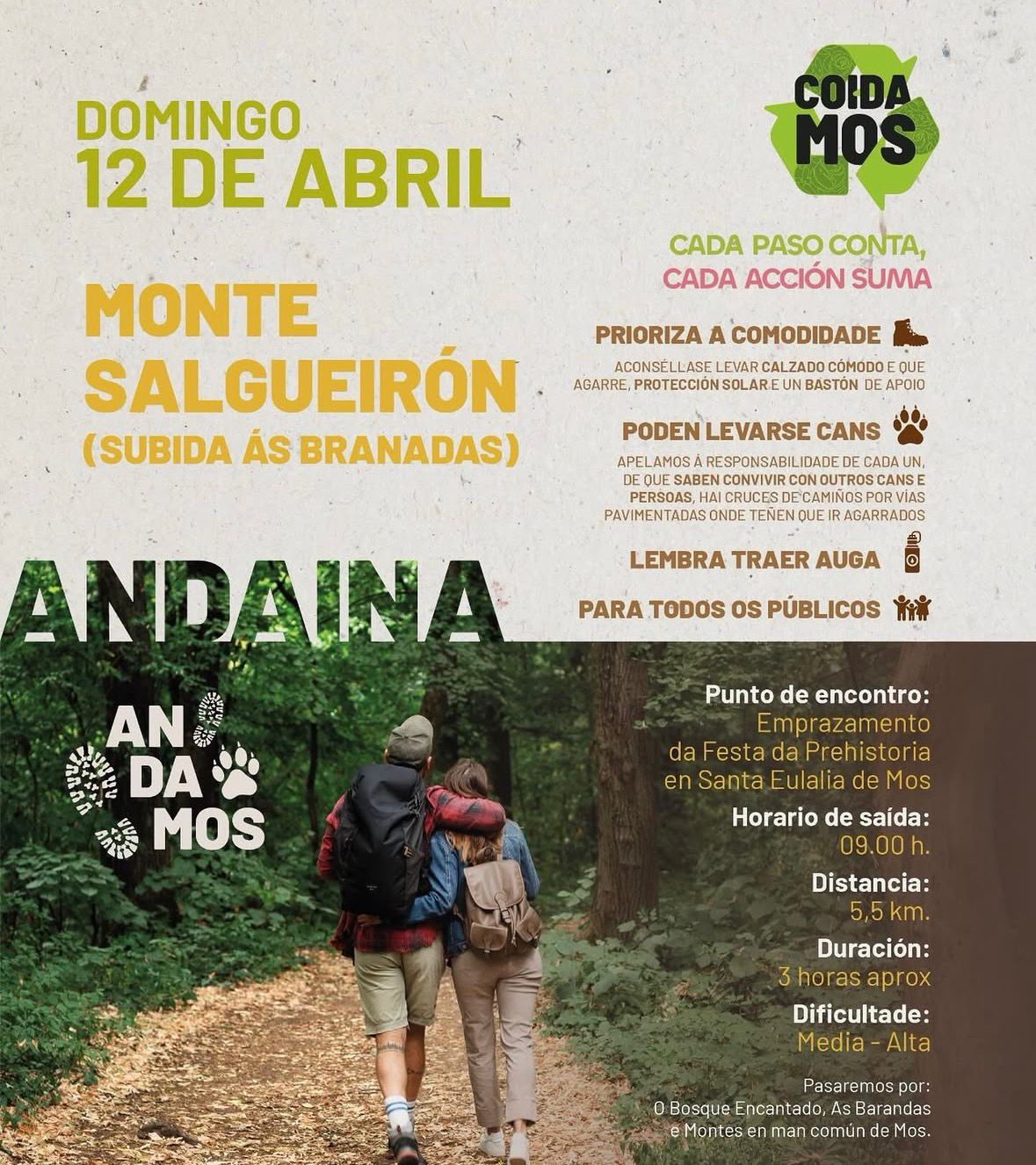 O Concello de Mos, a través da Concellería de Medio Ambiente, promove unha nova actividade ao aire libre co obxectivo de fomentar hábitos saudables e a concienciación ambiental entre a veciñanza. Trátase dunha andaina polo Monte Salgueirón (subida ás Barandas), que terá lugar o vindeiro domingo 12 de abril.