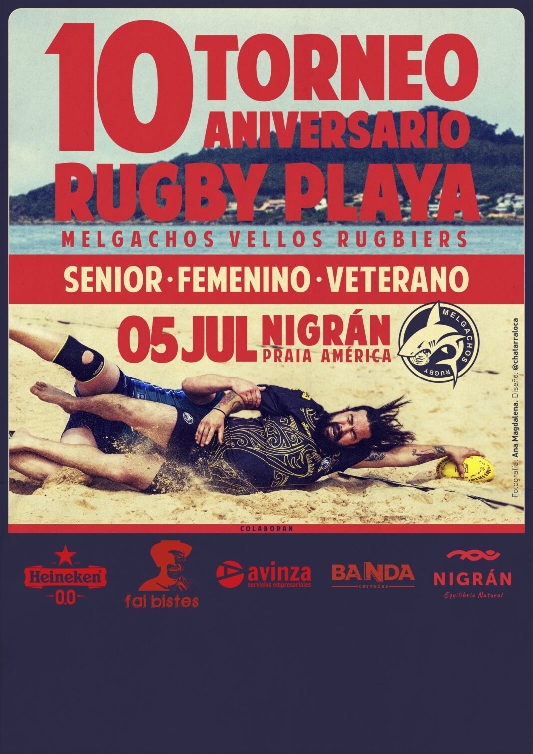 O Concello de Nigrán acolle o sábado 5 de xullo en Praia América a décima edición do torneo de rugbi-praia ‘Melgachos’ organizado en colaboración co devandito clube vigués e coa gran novidade de formar parte por vez primeira do circuíto nacional de rugbi-praia. Un ano máis, decenas de equipos de veteranos e senior de toda a península, e mesmo Irlanda, desputarán esta competición que, desde a súa orixe, ten lugar na area de Praia América, preto do aparcadoiro e o mercado multicultural. A inscrición de equipos está todavía aberta, facendo especial fincapé a organización en que este ano existan equipos femininos interesados. Como é tradición, despois de todo o día de partidos terá lugar o famoso ‘terceiro tempo’, no que os deportistas confraternizan comendo e bebendo e, con este fin, haberá unha barra instalada a pé de campo e música en directo.